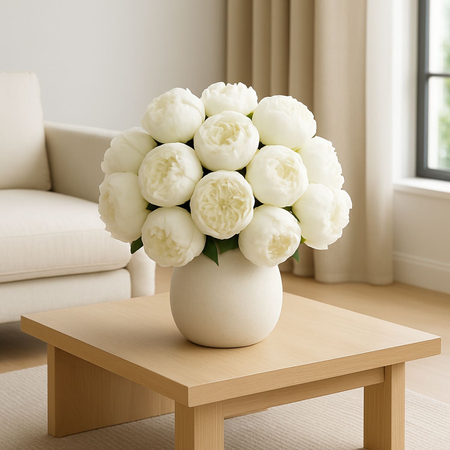 Parfait pour créer une ambiance chaleureuse, il trouve facilement sa place dans votre intérieur ou lors d’un événement spécial. Chaque pivoine est fabriquée en soie de qualité, avec une texture délicate et des détails raffinés. Le bouquet est prêt à être posé dans un grand vase ou intégré à une décoration de mariage.
